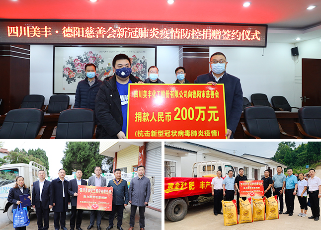 4月25日,四川美豐與德陽市教育局?jǐn)y手開展對口幫扶、助力鄉(xiāng)村振興實踐活動,向中江縣興隆鎮(zhèn)六里班村、果園村捐贈10噸復(fù)合肥。德陽市教育局黨組書記、局長周建平,公司董事會秘書王東向兩村捐贈愛心肥料。